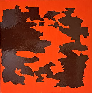 This was painted in May 2025 and was quite pivotal in that it unlocked a solution for two other pieces that I had virtually abandoned as failures. The ground of the work is matt orange oil paint (cadmium red and yellow mixed) contrasted sensuously with brown gloss paint.